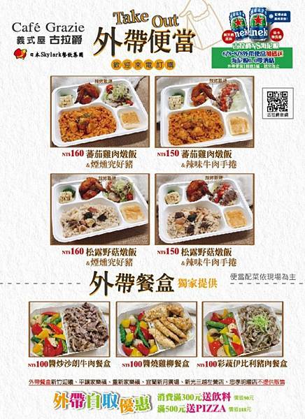 外帶便當100元起,不過要注意100元的便當沒有送海尼根,但是滿額送可以用